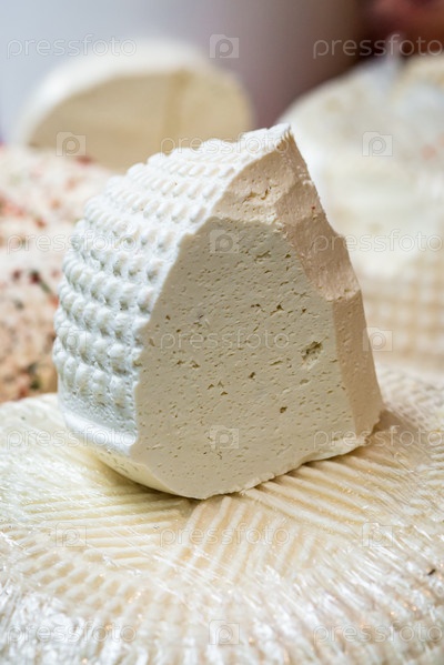 Кусок свежего белого сыра