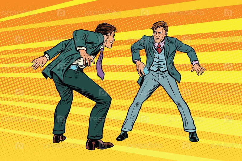 Дуэль бизнесменов на смартфонах в стиле вестернов