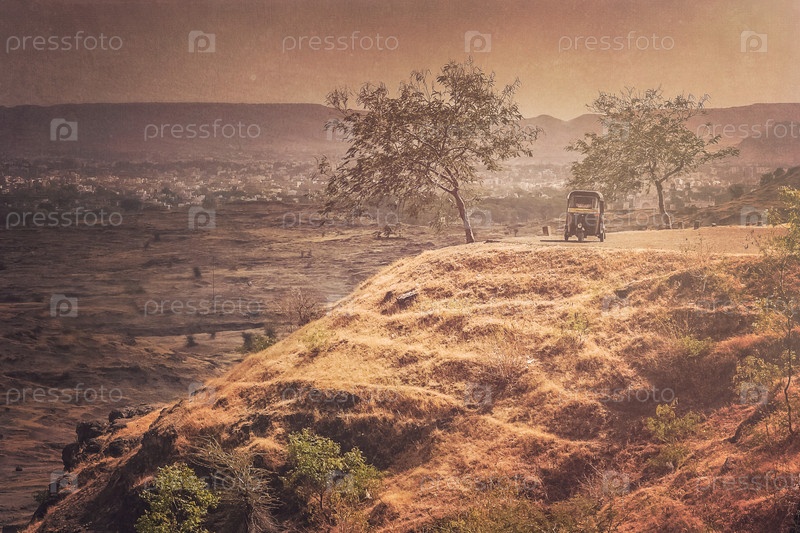 Старая рикша на индийской дороге