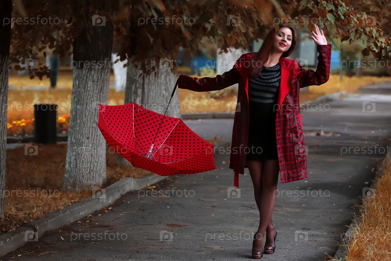 Женщина в плаще с зонтиком
