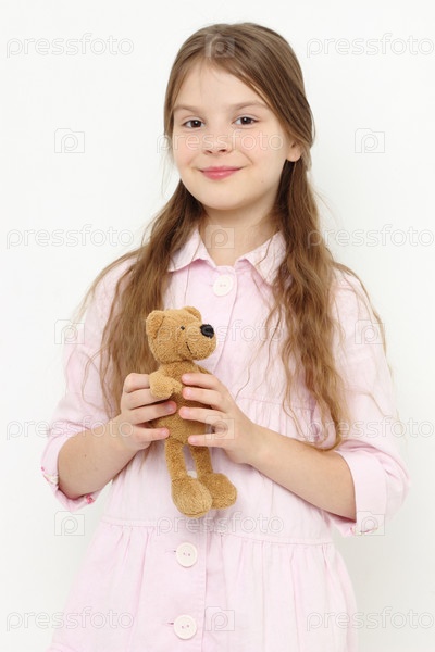 Маленькая девочка и игрушка медведь