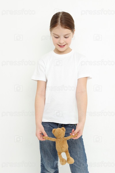 Симпатичная девочка с мишкой