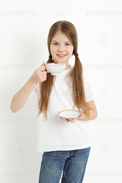 Симпатичная девочка держит чашку чая