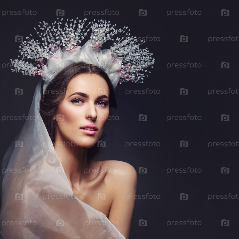 Красивая девушка в короне из кристаллов