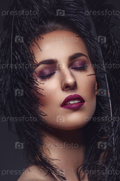 Красивая девушка с черным перьями