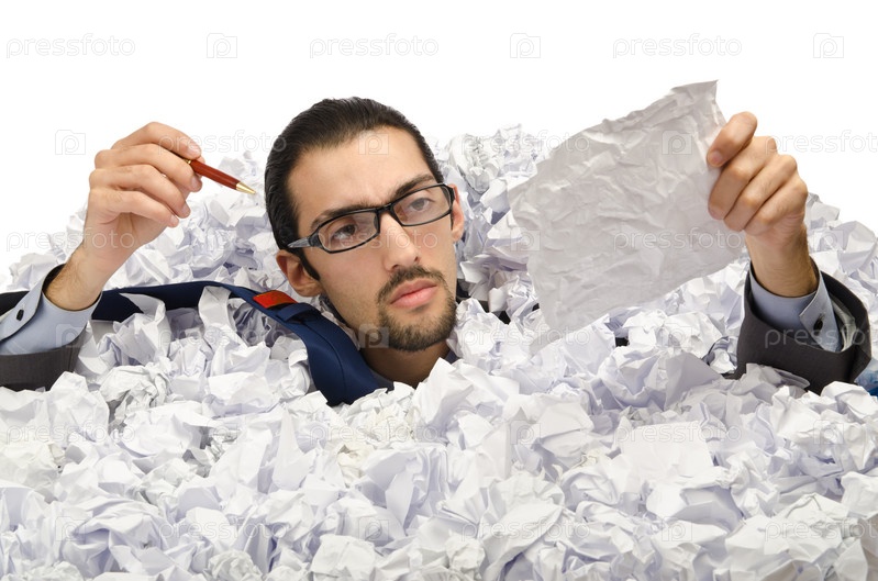 Человек с большим количеством макулатуры
