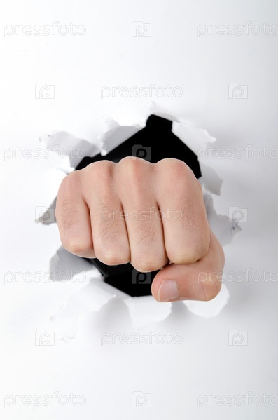 Кулак через отверстие в бумаге