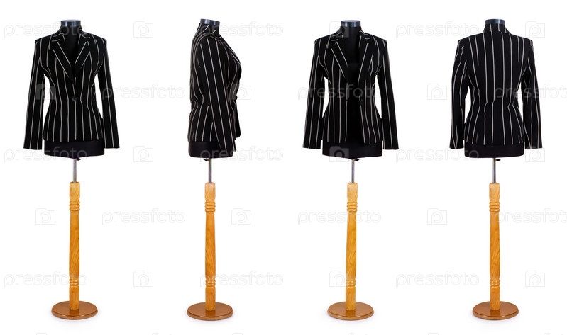 Стильная одежда на манекене, изолированная на белом фоне
