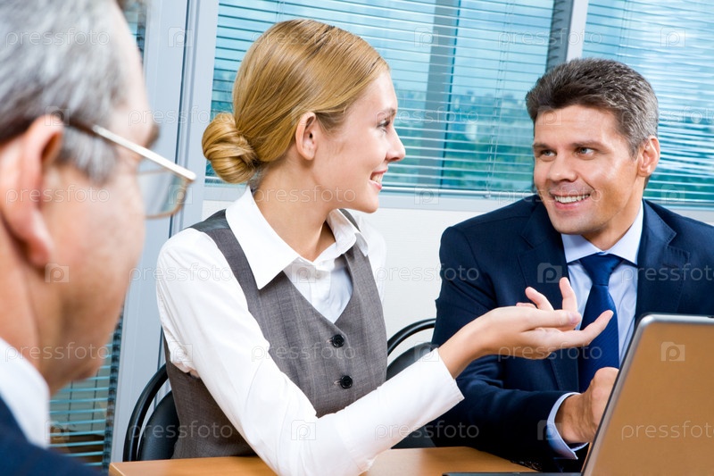 Портрет руководителей, смотрящих друг на друга и разговаривающих в офисе