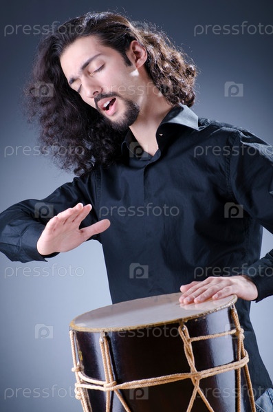 Человек играет барабане