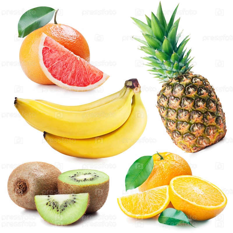 Набор различных фруктов на белом фоне