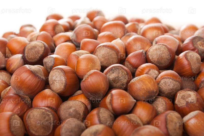 Фон из созревших коричневых орехов в скорлупе - фундука