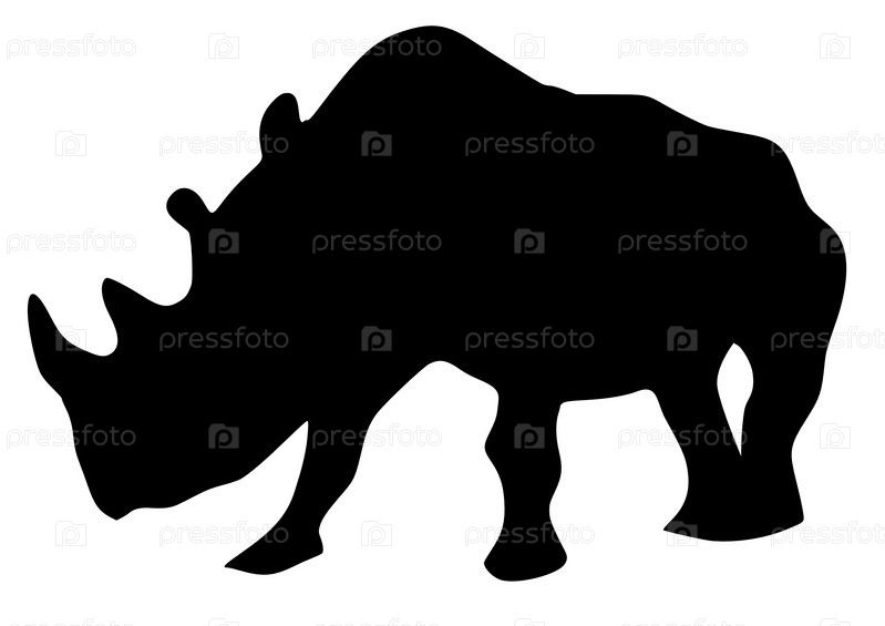 Черный силуэт носорога на белом фоне