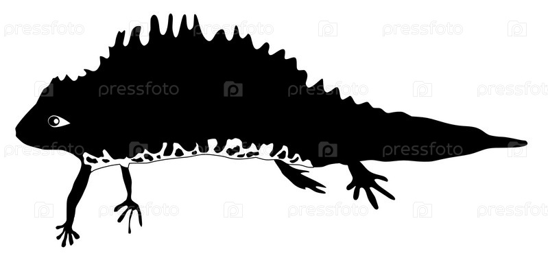 Черный силуэт тритона на белом фоне