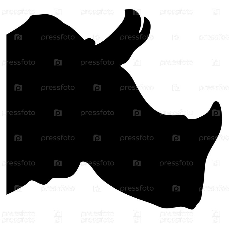 Черный силуэт головы носорога на белом фоне