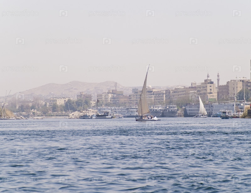 Египетские парусники, вид на набережную Нила. Асуан, Египет