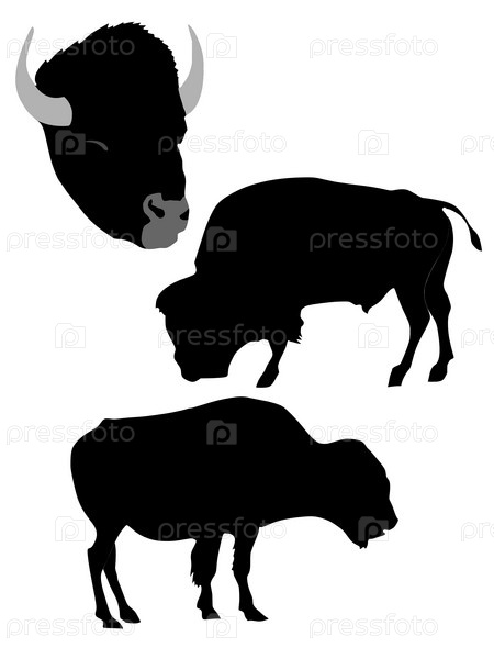 Черные силуэты бизонов на белом фоне
