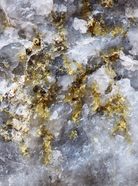 Самородное золото в кварце в руде Сибирского месторождения
