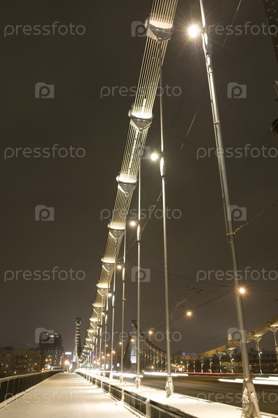 Московский вечер мост с иллюминацией Россия