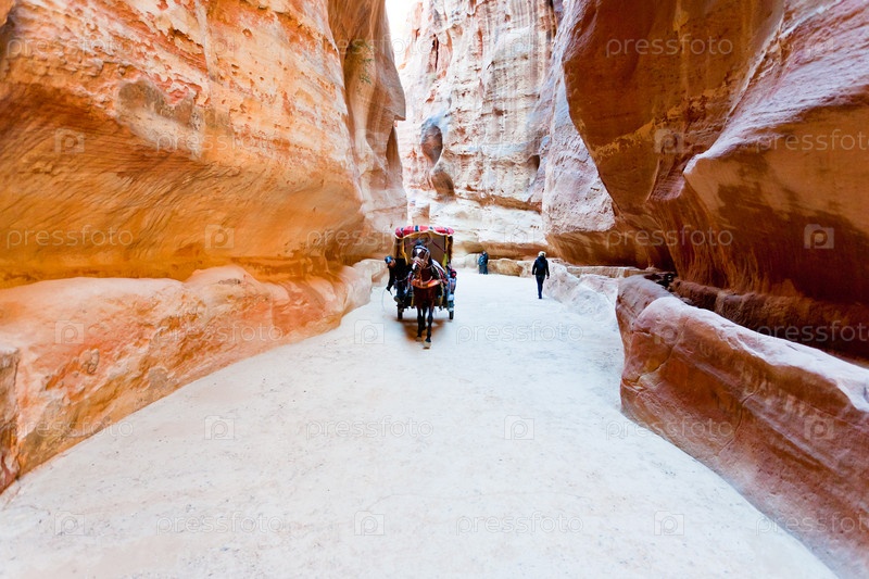 Повозка бедуинов в ущелье Сик в древнем городе Петра, Иордания