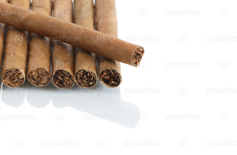 Несколько сигар в ряд на белом фоне с отражением