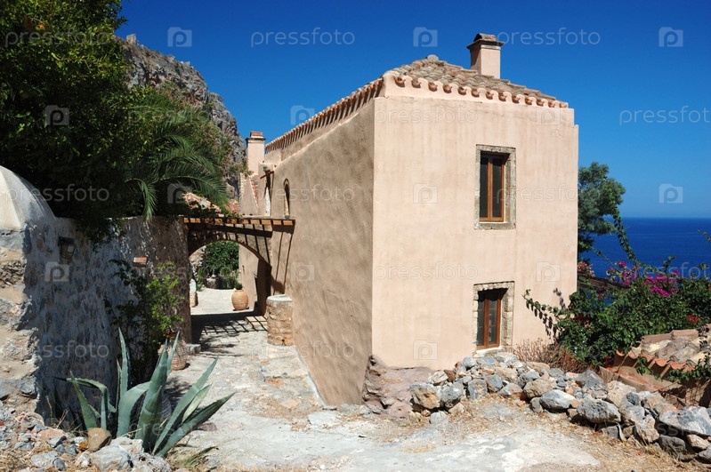 Старые улочки византийского города Монемвазия на восточном побережье Пелопоннеса, Греция