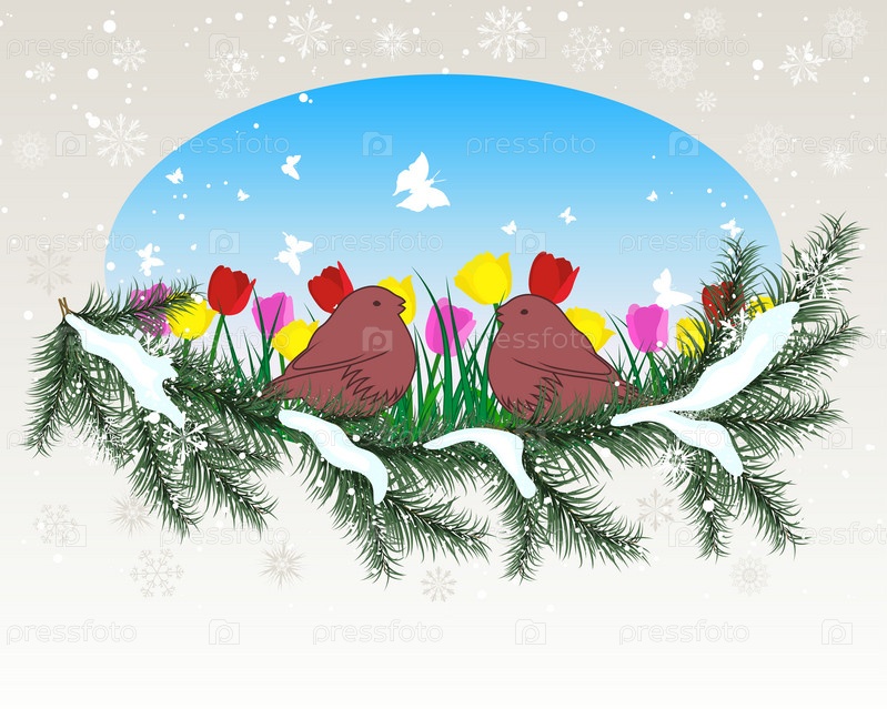 Зимний фон с овальной рамкой и силуэтами травы. Все объекты разделены