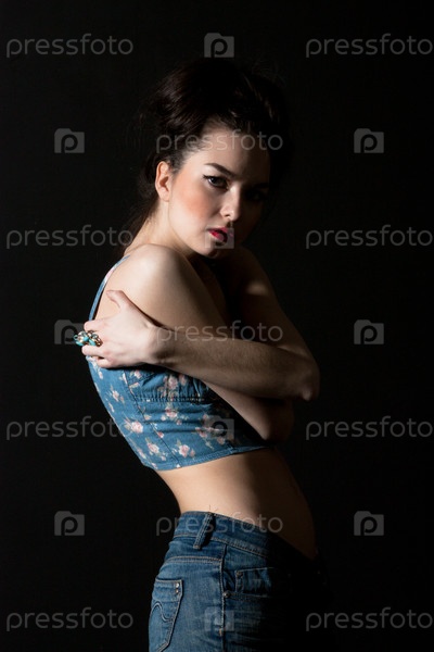 Портрет чувственной молодой женщины на темном фоне
