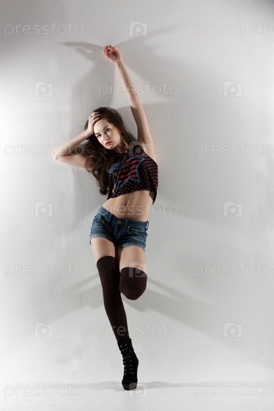 Портрет чувственной молодой женщины в студии на светлом фоне