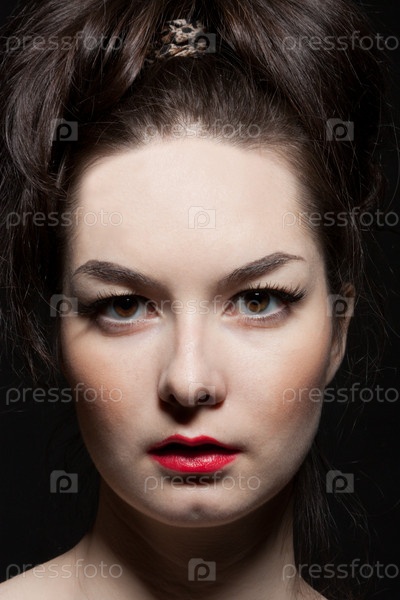 Портрет чувственной молодой женщины на темном фоне