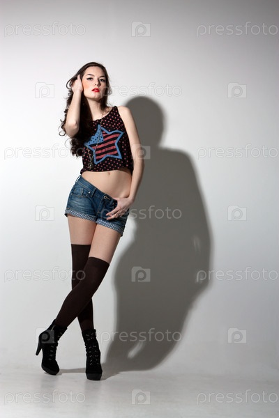 Портрет чувственной молодой женщины в студии на светлом фоне