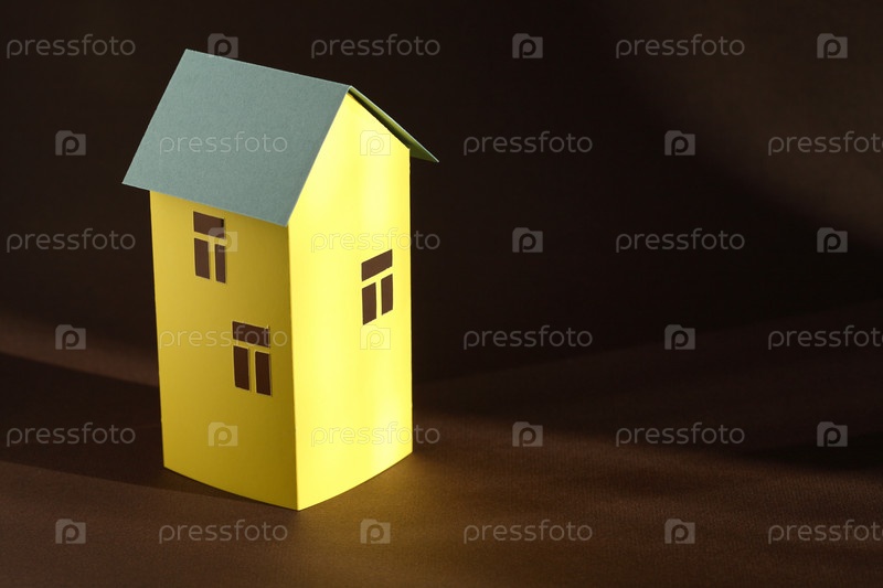 Милый дом из желтой бумаги с зеленой крышей на темном фоне