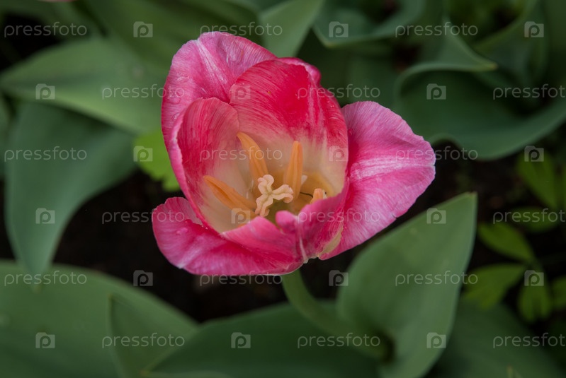 Весенний тюльпан с каплями росы на лепестках