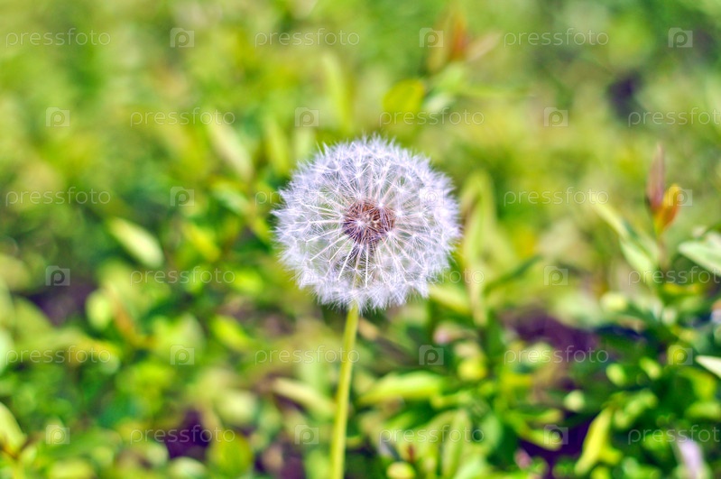 Белый одуванчик в зеленой траве в солнечный день