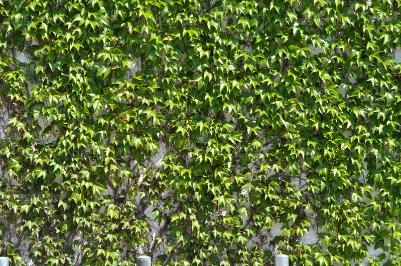 Зеленый плющ на серой бетонной стене