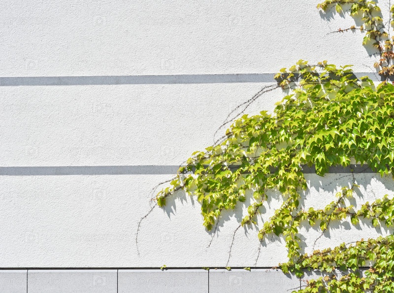 Зеленый плющ на серой бетонной стене