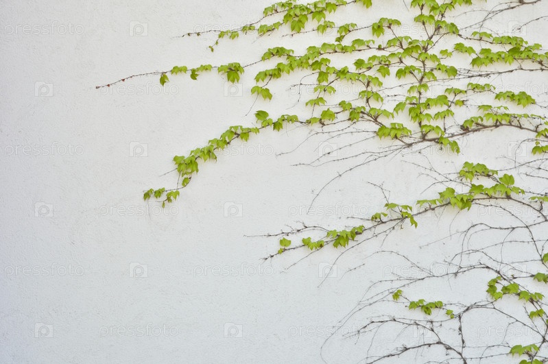 Зеленый плющ на серой бетонной стене