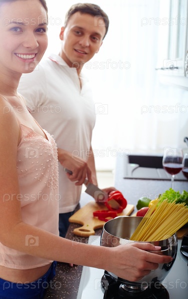 Пара готовит вместе