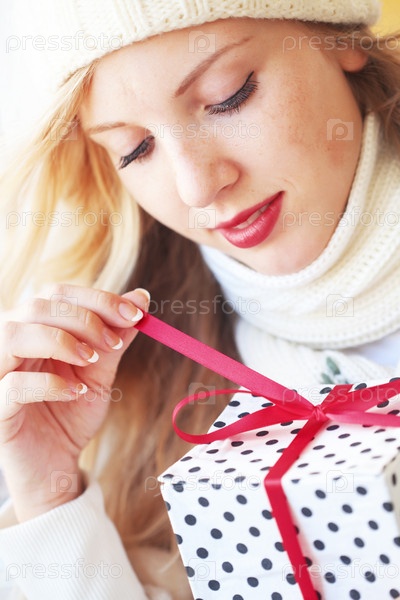 Красивая женщина с подарком