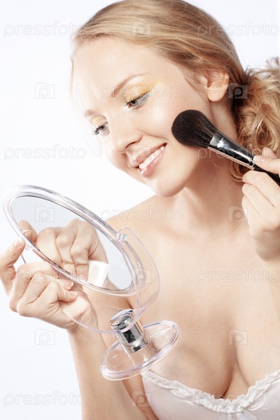 Молодая женщина, глядя в зеркало
