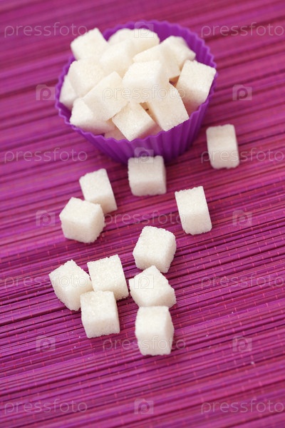 Сахар-рафинад в формочке на фиолетовом столе