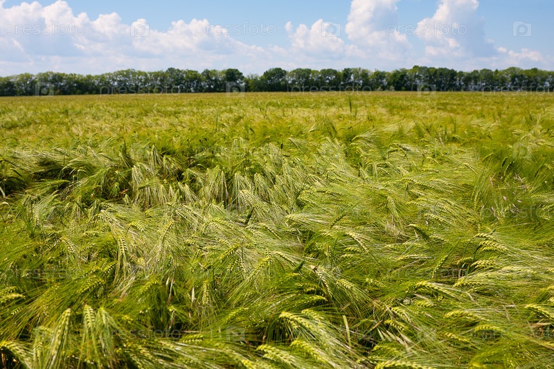 Зеленое пшеничное поле в летний день