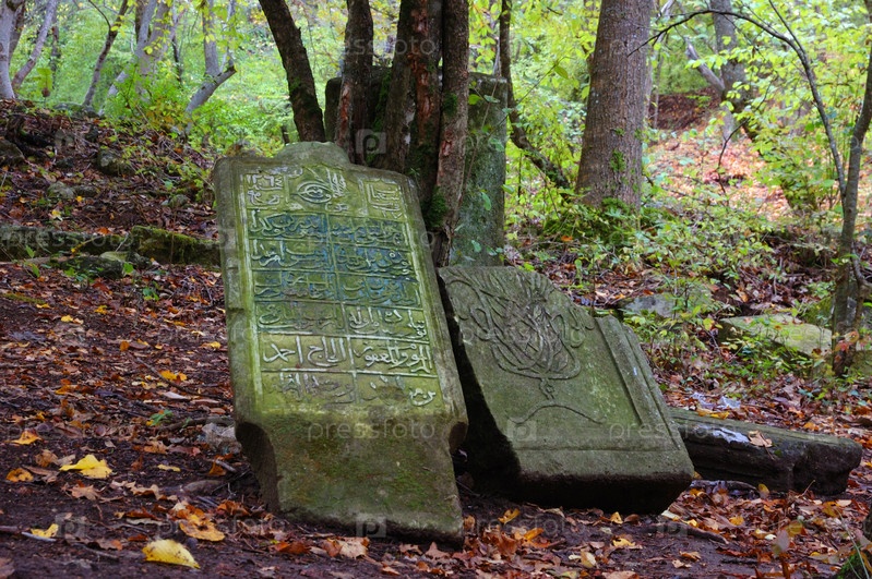 Средневековое татарское кладбище Гази Мансур в пещерном городе Чуфут-кале возле Бахчисарая, Крым