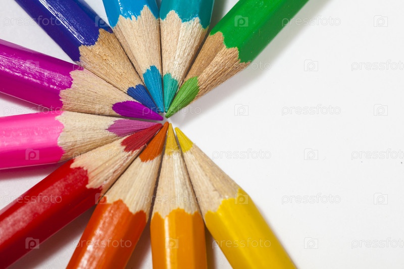Набор цветных карандашей на белом фоне