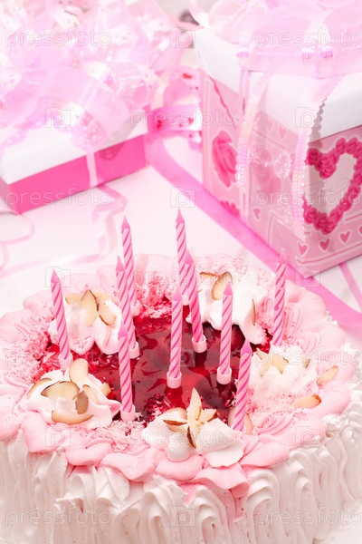 Торт со свечами и подарки