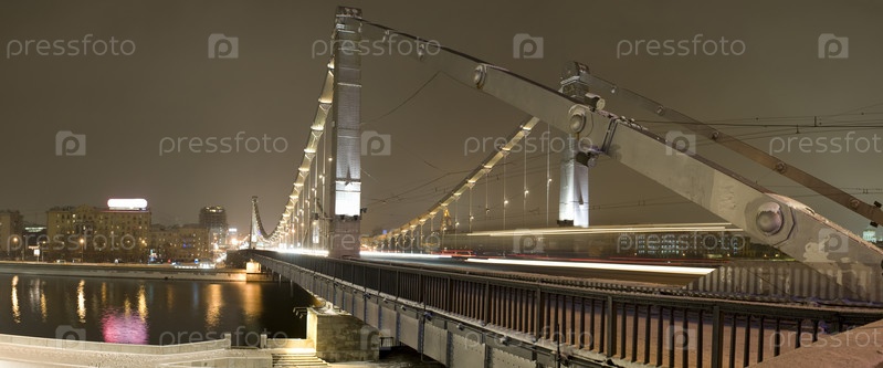 Московский вечер мост с иллюминацией Россия