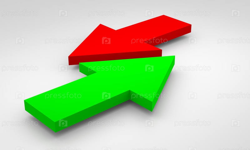 Зеленые и красные стрелки на сером фоне