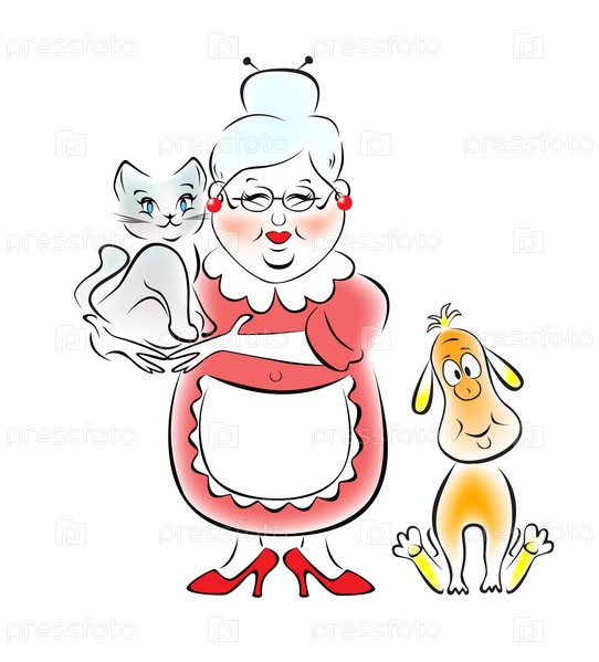 Бабушка с собачкой и котенком