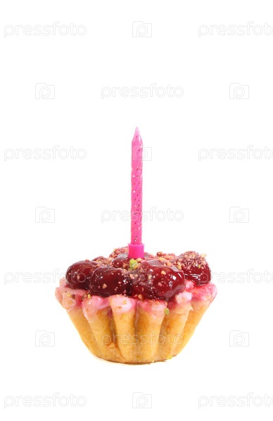 Праздничный вишневый пирог, изолирован на белом фоне