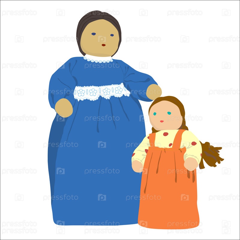 Фигурки матери и дочки (куклы) на белом фоне